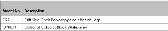 Drift Dinning Chair - Complementing the drift table has a polypropylene seat and back with a beech frame, this chair is available in 3 colours.