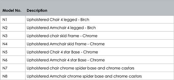 Nordic chairs are designed in Sweden and provide comfort and style for commercial interiors. Mix and match four seat options and four leg options.
