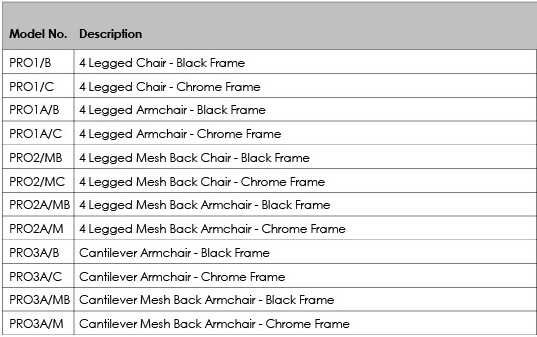 Proto is a durable chair available with an upholstered or mesh back and available in four legged which stacks 5 high or cantilever at 4 high Designed for conference rooms, meeting areas and general office.